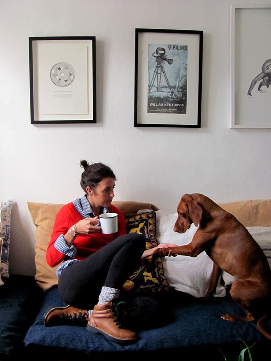 Comfy clothes, a cup of tea, and a good dog. Credit: Miss Moss
